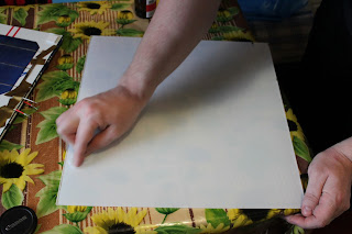 Как только прикатал начальным кусочком клеевой слой к акрилу, отвернул пленку вверх, чтобы оттянуть слой подложки (подложка бумага приклееная к клеевому слоу пленки, в момент приклеивания пленки, подложка убирается):